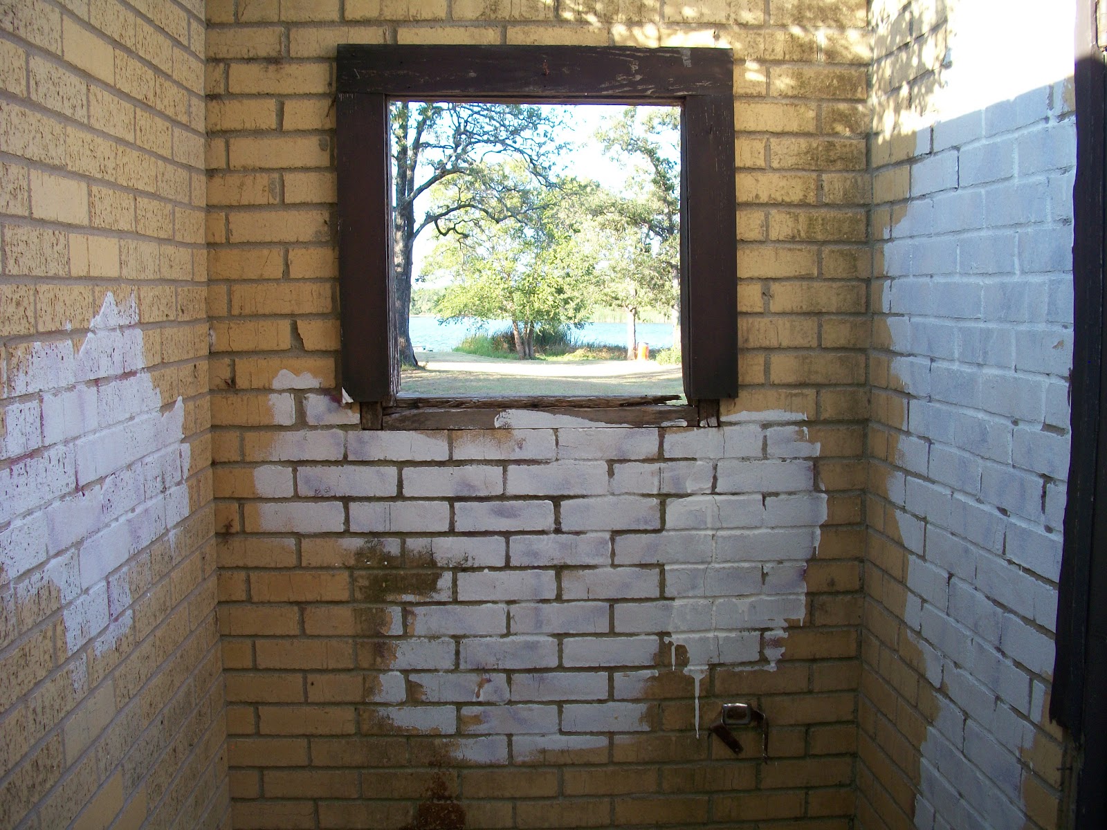 This would be a great place to put in the picture of my stringer of fish. I have no evidence of fish in the lake today. I'll leave you with the ruins of an outhouse that has a beautiful view of the lake out its window instead. We ought to be able to make something meaningful out of that..